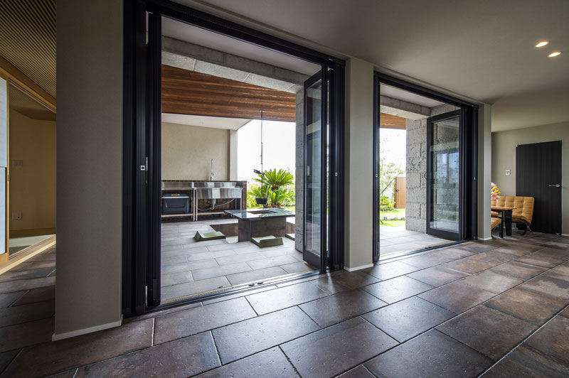 大好きな釣りをしてそのまま屋外囲炉裏で新鮮な魚をいただく。そんな贅沢がしたい。日常に海とクルーザーを組み込んだライフスタイルをイメージした住宅がクライアントの望む形だった。