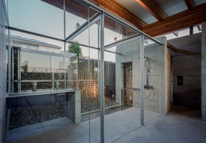 そこで、この住宅では各要素を構成するコンクリートや、鉄、ステンレス、木、合板、ガラス、石といった素材そのものを仕上げとして用いています。これにより、空間の抽象性と素材の具象性が互いを引き立たせ、静かでありながら情感豊かな空間となっています。