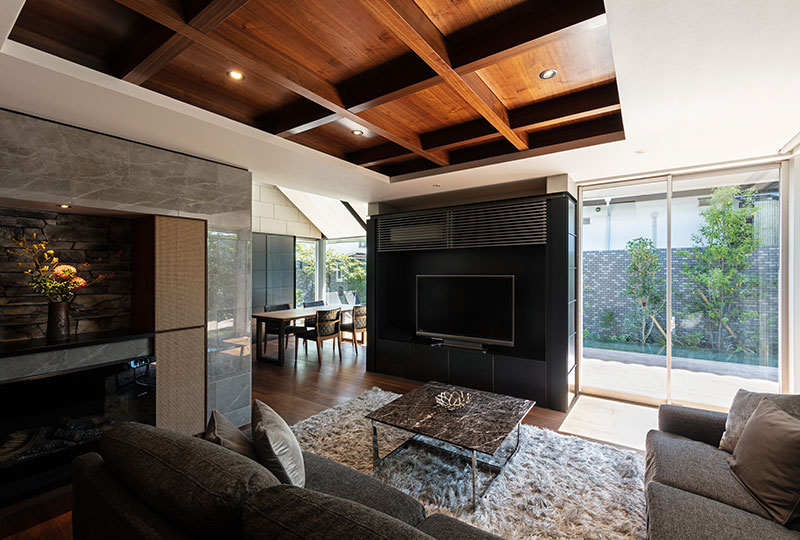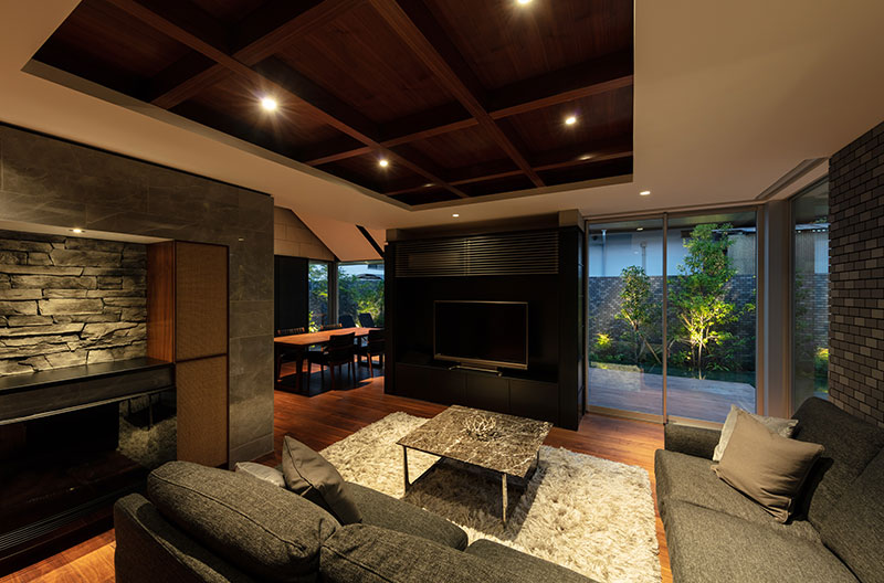 居場所が豊富なこの内外の空間を活かして、料理上手な奥さまが腕を振るうホームパーティが開かれているようです。ゲストが感じるホテルのような非日常を、日常として感じることができる贅沢な癒しのお家となりました。